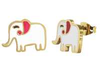 Arete Acero Inoxidable Dorado Elefante Orejas Rosas Esmaltado 11×13 mm