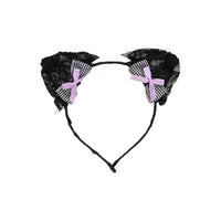 Diadema Bufon Orejas de Tull Negro con Moño de cuadros