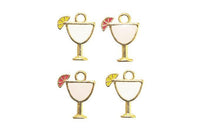 Dijes Saga Dorado Copa Margarita Esmaltado Blanco Rosa 13×16 mm