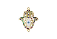 Frau Elegance Dije Chapa de Oro con Circonia Mano de Hamsa Multicolor